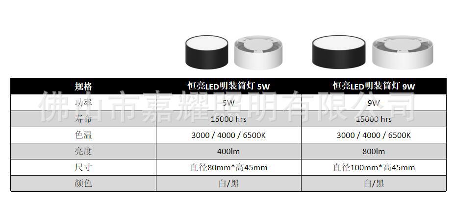恒亮明装筒灯 5W 865 D80 黑色
