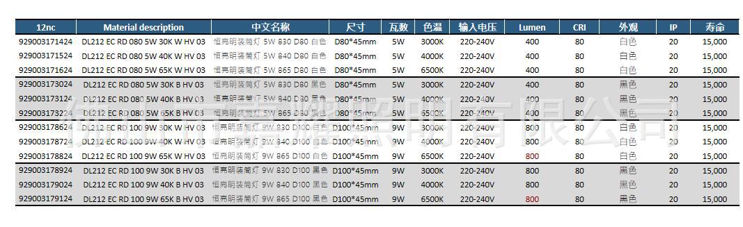 700lm -- 9W 直径100mm 高45mm