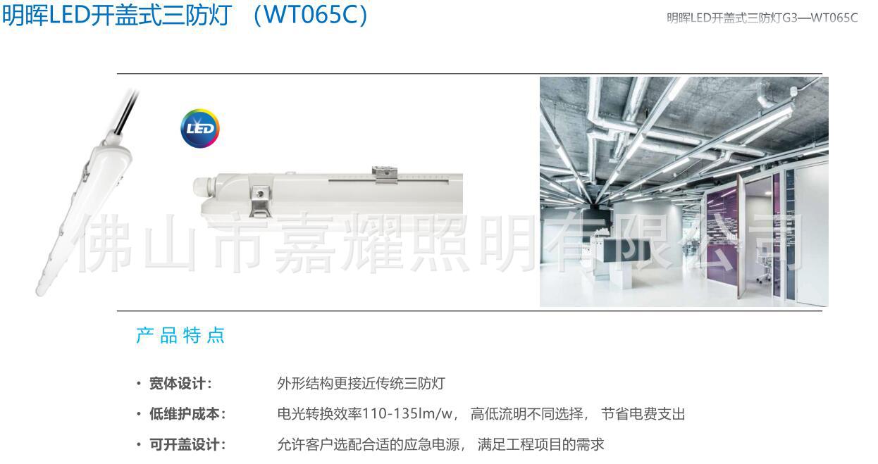 飞利浦一体式LED三防支架 WT065C LED开盖式三防灯具22W41W31W50W