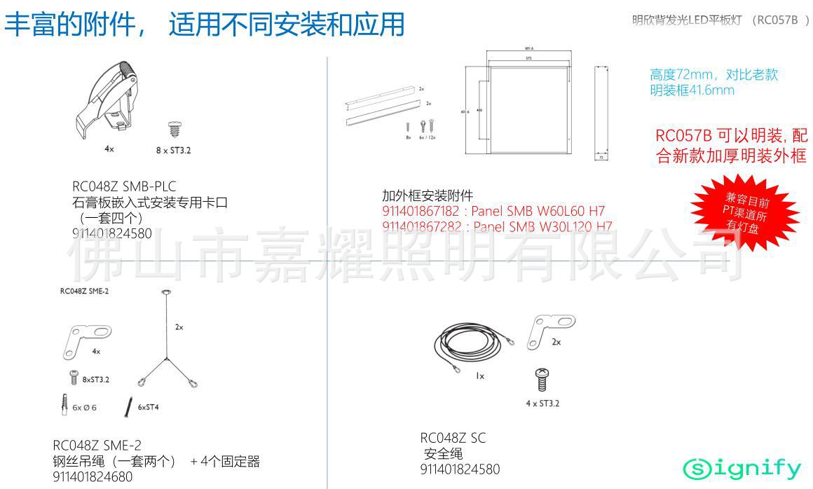 • 灵活应用: 配合丰富附件,支持所有五种安装方式--龙骨、石膏板、集成吊顶、 悬吊、吸顶