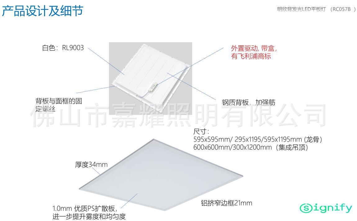 飞利浦背发光LED灯盘 RC057B 35W 50W 600*600集成吊顶LED面板灯